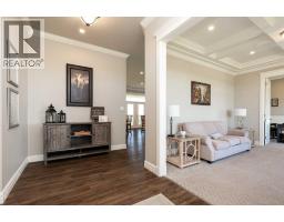 Tucked within the prestigious Edgemoor subdivision, this exceptional estate blends peaceful country living with the convenience of being just minutes from West Lethbridge. Set on 1.1 acres of beautifully landscaped grounds, the property captures sweeping views of the coulees, mountains, and surrounding open fields—an unbeatable setting paired with an extraordinary lifestyle.Boasting over 5,600 sq. ft. of meticulously finished living space, the main residence features soaring 10-foot ceilings on the main floor and 9-foot ceilings below. Timeless brick and stucco construction is complemented by high-end finishes throughout, including granite countertops, stainless steel appliances, durable vinyl plank flooring, and four fireplaces that add warmth and character.Designed with both everyday living and entertaining in mind, the home offers a spacious, chef-inspired kitchen with a large central island and abundant storage. Adjacent living areas include a generous family room, elegant sitting area, bright home office, and a convenient main-floor laundry/mudroom. The primary suite serves as a true retreat, complete with its own granite-surround fireplace and a luxurious 5-piece ensuite.Upstairs, a massive recreation room with fireplace provides the perfect gathering space, alongside two oversized bedrooms (each measuring 16' x 23')—ideal for children, guests, or extended family. The fully finished basement expands the living space even further, featuring a large family room with an additional fireplace, extra bedrooms, and ample storage.Adding incredible versatility, the detached carriage house includes a double and single garage below, with a well-appointed upper level offering a 2-bedroom legal suite, office space, additional storage, and potential for a bachelor suite. It’s perfectly suited for multi-generational living, guests, or supplemental rental income.The grounds are fully landscaped with mature trees, underground sprinklers, and exceptional privacy. Both the main home and carriage suite are equipped with fire suppression systems and connected to Telus fibre optic internet, ensuring modern safety and connectivity.Whether you're seeking space to grow, a place to work from home, or a private retreat close to the city, this remarkable property delivers comfort, flexibility, and endless opportunity. (id:64686)