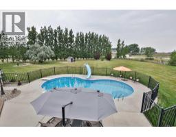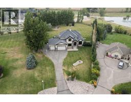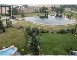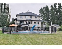 Welcome to your private country retreat just minutes from the city! This beautifully updated, fully finished home offers nearly 2,841 sq. ft. above grade plus an additional 1,531 sq. ft. in the bright walkout basement — almost 4,372 sq. ft. of developed space on 1.17 acres in a peaceful cul-de-sac.Step inside to a soaring front entry and a formal dining room with warm hardwood floors flowing into a spacious great room featuring a cozy gas fireplace and custom built-ins. Just off this gathering space, a rear patio with retractable awning and natural gas hook-up creates an ideal BBQ and outdoor dining area.The gourmet kitchen is designed for everyday life and entertaining — enjoy morning coffee in the sunny breakfast nook, prep dinner at the oversized butcher-block island, and keep organized with a built-in desk and generous walk-in pantry. Freshly refinished cream cabinetry adds timeless appeal.A dedicated home office with high ceilings and custom built-ins is perfectly positioned near the front entry. The main-floor laundry room offers abundant storage and a sink, while the mudroom connects seamlessly to the oversized, heated triple garage — a practical setup for busy families.Upstairs, the primary suite is a true retreat with a tray ceiling, expansive custom walk-in closet, and spa-inspired ensuite featuring a soaker tub and multi-jet tile shower. A maple spindle railing hallway separates the primary from three additional bedrooms. The main bath offers dual sinks and a separate shower/toilet area for easy shared use.The walkout basement was made for entertaining — bright with natural light and anchored by a freshly renovated wet bar with sleek wood countertops, stunning cabinetry, and high-end appliances (dishwasher, ice maker, wine & beverage fridges included). A beautiful feature wall with built-ins and custom rockwork creates the perfect game-day space. Three versatile rooms provide endless options: home gym, guest suite, or music room. A new ly updated bathroom with tiled shower and floating vanity adds style and convenience.Step outside to your own backyard oasis: a heated inground saltwater pool for April–October swims, a six-person hot tub with built-in audio, and an 800 sq. ft. composite deck with outdoor fireplace for cozy prairie nights. In winter, the adjacent pond transforms into your private skating rink.Extras include in-floor heating on every level, full-property irrigation (even planters), and built-in audio indoors and out. The pool area is fully fenced, and Gemstone lighting sets the perfect evening glow.Located in Vista Meadows, you’ll enjoy in-town services — including septic and water treatment — with an out-of-town feel. School bus pickup is right at your door, and city amenities like restaurants, coffee shops, and greenhouses are just minutes away. Best of all, this home is move-in ready so you can start enjoying it from day one. (id:64686)