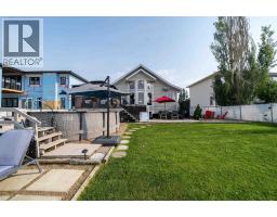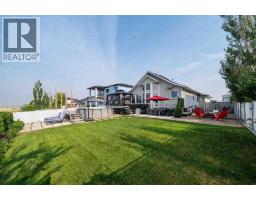 Welcome to 110 Redcliff Way SW, a bright and inviting walkout bungalow just six houses from the edge of the Redcliff Golf & Country Club, and only a one-minute drive to the clubhouse. With vaulted ceilings, skylights, and large windows framing stunning panoramic views of the coulees, this home blends peaceful living with thoughtful functionality. At the front of the home, a flexible room currently used as a butler’s pantry offers extra prep space, cabinets, and a second fridge — but could also serve as a home office, sitting area, or den. Just off the heated and insulated double garage, you'll find a boot room with closet for storing all your outdoor gear. The main living area opens into a bright, open-concept kitchen/dining/living space. Enjoy crisp white cabinetry, newer laminate countertops, stainless steel appliances, a corner pantry, breakfast bar, and island — perfect for family meals and entertaining. A 2pc guest bathroom is conveniently located just off the kitchen. From the spacious dining area, step out onto your deck with a built-in gazebo, ideal for soaking in the expansive prairie skies and coulee views. Watch summer storms roll in or unwind in the hot tub after a long day. The large backyard includes a sprawling grassed area, paved patio, above ground pool and underground sprinklers for easy lawn maintenance. The primary bedroom retreat features a vaulted ceiling, walk-in closet, plus a 4pc ensuite with a jetted tub, shower, oversized vanity, and large mirror. Downstairs, the fully finished basement boasts 9-foot ceilings, a cozy living area with fireplace, double-door bedroom (currently a music room), two additional large bedrooms, a 4-piece bathroom, and a fifth bedroom currently used as a home gym. A separate laundry room and utility/storage space add even more function. This home checks all the boxes for relaxed living just steps from the golf course, with room for guests, hobbies, and hosting — both indoors and out. 110 Redcliff Way SW — Lifestyle , space, and scenery, all in one. (id:64686)