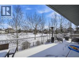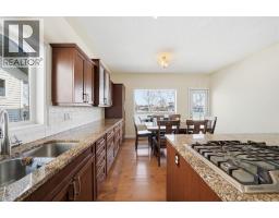 Welcome to this fully finished 4 bedroom, 3 bathroom walkout bungalow backing onto green space with a playground. This well-designed home offers 2 bedrooms up and 2 down, plus a dedicated office in the basement. The main floor features hardwood flooring and an oversized living room and kitchen area, complete with granite countertops, built-in oven and microwave, and a large island with countertop stove. The primary bedroom includes a spacious 4 piece ensuite, a great sized walk-in closet, and direct access to the full-width rear deck, which is also accessible from the kitchen, creating a great indoor-outdoor flow. The walkout basement opens to a poured concrete patio with a hot tub included, making the backyard space functional and private. This home is equipped with a solar system designed to significantly offset electricity costs, with current usage resulting in minimal to no power bills (details available). A great opportunity in a family-friendly location with direct access to green space. (id:64686)