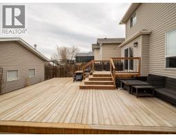 Welcome to this beautifully updated two-storey home in the desirable community of Heritage Heights—offering a “like-new” feel throughout! Freshly painted from top to bottom, this home features new flooring on all levels, new carpet on the stairs, and stylish quartz countertops in both the kitchen and bathrooms, complete with undercount sinks and modern finishes.The contemporary kitchen is a true highlight, showcasing professionally painted cabinetry, a functional island with seating, and an inviting atmosphere perfect for both everyday living and entertaining. The adjoining dining area and bright, comfortable living room—featuring a built-in entertainment centre—add warmth and charm to the main level.Upstairs offers three spacious bedrooms, while the fully finished lower level provides a large rec room, fourth bedroom, bathroom, and additional storage—ideal for growing families or guests. A main-floor office adds flexibility for those working from home.Step outside through large patio doors with a power blind to a beautifully designed two-tier deck—perfect for relaxing or hosting. The home also features new light fixtures, updated blinds, custom railings, and a welcoming front verandah.The heated double garage with lane access adds convenience, while the quiet street location enhances the sense of comfort and privacy. Enjoy being just steps from walking and bicycle pathways, and close to schools and shopping.A truly exceptional home—perfect for families or professionals seeking quality, comfort, and lifestyle in one of Lethbridge’s most desirable neighbourhoods. (id:64686)