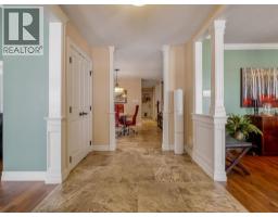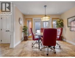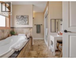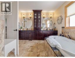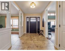 Imagine starting your day surrounded by peaceful views and quiet natural beauty — a distinguished residence in Riverstone where timeless architecture and refined comfort create a home that feels both elegant and welcoming. Custom built and beautifully appointed, this exceptional home captures scenic views of the natural habitat and parkland across, offering a serene backdrop for everyday living. Rich antique oak hardwood floors, soaring 12-foot ceilings, detailed crown mouldings, and a striking custom mantle with gas fireplace showcase exceptional craftsmanship while creating an atmosphere of warmth and quiet sophistication. Thoughtfully designed with beautifully defined living spaces — a refreshing alternative to typical open layouts — this home offers inviting rooms to gather, relax, and enjoy. The gourmet kitchen is designed for both relaxed mornings and effortless entertaining, featuring in-floor heating, maple cabinetry with corner pull-outs, an appliance lift, granite countertops, and a tumbled travertine backsplash, with quality finishes carried throughout. The adjoining nook opens to a sheltered private courtyard deck, an intimate outdoor setting perfect for your morning coffee or evenings with family and friends. The main floor also offers a laundry room, 3-piece bath with body jets, and a versatile office or bedroom with direct access to a second deck and south-facing patio, providing multiple outdoor spaces to enjoy throughout the day. The upper level is devoted entirely to a luxurious primary retreat, designed as a private sanctuary with a spa-inspired 5-piece ensuite featuring a 10ft. granite vanity, heated floors, soaker tub, and double shower with body jets. Two walk-in closets, a second laundry area, and a private balcony with tranquil views create a peaceful place to unwind. The fully developed lower level extends the home’s comfort with cork flooring, two additional bedrooms, a spacious family room with a second fireplace, full bath, and media room ideal for family movie nights. With 3596sqft of total living space, exceptional custom construction, and a rare collection of outdoor living areas, this home offers a lifestyle defined by comfort, character, and quiet elegance in one of Riverstone’s most desirable settings — a place to be enjoyed for years to come. (id:64686)