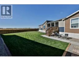 $102 MonthlyWelcome to The Seasons in Coaldale — where modern luxury meets easy living.Prepare to be amazed by this 2024 modular home that redefines what one-level living can look like. With 1,550 sq. ft. of thoughtful design and tons of upgrades, this home is proof that modular living can be stylish, spacious, and sophisticated.From the moment you arrive, the curb appeal sets the tone: a large fenced yard with underground sprinklers, lush sod, extra gravel parking, and a paved double pad. Step onto the covered deck, where you can sip your morning coffee rain or shine, and take in the peace of having no neighbors behind you — just open field views and green space beside.Inside, the home feels as grand as it is warm. High ceilings, expansive windows, and an open layout fill the space with natural light. The living room easily accommodates a grand piano (and yes, there’s one here now!).The kitchen is incredible:•Two-tone cabinets (creamy uppers + mystic blue lowers) with a premium velvet finish•An oversized island with extended eating bar and pendant lighting•Full backsplash, pot lights, and a walk-in pantry•Stainless steel appliances including a French-door fridge/freezer, ceran-top stove, OTR microwave, dishwasher, and deep stainless farm sinkThe dining area offers space for a large table and a desk area and even built-in cabinets.The primary retreat is everything you’d expect — a spacious bedroom with a walk-in closet and a spa-like ensuite featuring double sinks, tiled walk-in shower with glass doors, linen storage, and extra cabinetry. Two additional bedrooms also feature walk-in closets and share a well appointed 4-piece bathroom.Thoughtful touches continue throughout: craftsman-style doors with lever handles, black obsidian fixtures, extra cabinets in the laundry room (with its own sink, exterior door, and room for a freezer or dog run access), plus upgraded exterior doors with glass inserts for more light.Outdoors, the possibilities are endless: a garden, playground, or dog run — there’s room for it all. And as a resident of The Seasons, you’ll enjoy walking and biking paths, a scenic pond, RV storage, and a friendly, pride-filled community. With low utilities, property taxes, and condo fees, this home offers both beauty and value.If you’ve been waiting for a modular home that feels nothing like compromise — this is it. Bring your grand piano, your pets, your dreams of easy luxury living… and make this one yours. (id:64686)