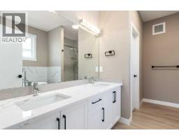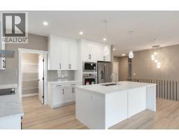 This is a brand new triple garage bungalow with a fully finished walkout basement. It is 1608 sq ft in a great area close to a beautiful waterway and park, and has premium finishes throughout. The main floor is a modern open plan with a wide entry hall, 9’ ceilings, high quality flooring, and a 25’ deck. The kitchen includes cabinets to the ceiling, quartz counters, under-mount sink, select tiles, and a large walk-in pantry. Also on the main floor is the spacious and open living / dining room, the primary bedroom, a laundry room, and a second bedroom or office. Deluxe appointments in the master suite include built in cabinetry in the walk-in closet, a double vanity, a freestanding soaker tub and a 6' shower. The lower level has three more spacious bedrooms and a very big family room with a built-in wet bar, a full bathroom and patio doors to a shady covered patio. All rooms in this home have lots of natural light, and there are many extras including a 8’ island in the kitchen, two fireplaces, and a Hardie board exterior. (id:64686)