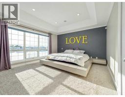 Welcome to this breathtaking custom-built two-storey estate, perfectly positioned on the shores of Fairmont Lake, offering over 4,000 sq. ft. of fully developed living space and panoramic lake views from nearly every room. Designed with exceptional craftsmanship and attention to detail, this home features four spacious bedrooms, 3.5 luxurious bathrooms, and a walk-out basement that enhances both functionality and flow. Entertain with ease in the expansive dining and recreation areas, relax in the private 7-seat theatre room, or unwind by one of three elegant gas fireplaces. The gourmet kitchen is a chef’s dream, complete with granite and Corian countertops, built-in appliances, ample cabinetry, and stunning lake vistas. Upstairs, the bedrooms are thoughtfully laid out for privacy and comfort, including a primary suite with spa-inspired amenities. Outdoor living is just as impressive with a covered patio below for year-round enjoyment, and beautifully landscaped surroundings. A spacious triple-car garage provides plenty of room for vehicles, storage, or hobbies. This is a rare opportunity to own an architecturally striking lakefront home where luxury, comfort, and natural beauty come together seamlessly. (id:64686)