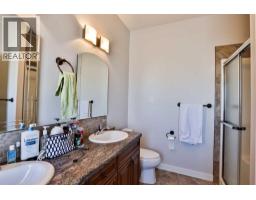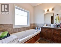 This custom built home has been thoughtfully designed to offer all of the upgrades and conveniences of an executive home with the benefit of a private basement revenue suite. The home's large entry archway with front double attached garage and the master suite windows over the garage, give this home fantastic curb appeal. The home's appeal is further supported by the superior finishes of Hardie board siding, stone, and metal railing. The main floor has a spacious open design with vaulted ceilings, hardwood floors, and the kitchen, dining, and living areas all open to each other. The kitchen cabinets are a gorgeous rich solid maple stained door with dark countertops and complementing tile backsplash. Appliances are stainless steel with a gas stove, over-the-range microwave hood fan, fridge with water, and dishwasher in the island next to the sink. The kitchen and dining are accented by unique custom lighting. There is a lovely deck just off the living room that is partially enclosed for easy enjoyment. The living room has a corner gas fireplace with custom shelves for cozy easy decorating. This main level also offers a second bedroom, dedicated laundry room, and 4 piece bathroom. The master bedroom is up one more level above the garage, boasting a beautiful large primary bedroom with walk-in closet, and a spa-like ensuite with a jetted tub, double vanities, and a glass door shower. The basement suite, with a private walk-out entry, has tall ceilings with large windows for lots of light creating a bright and inviting feeling. The suite offers 2 large bedrooms, a 4 piece bathroom, it's own stacking washer and dryer in a laundry closet, a modest kitchen and eating bar, and a corner gas fireplace. The small backyard is fully fenced with a small covered patio area, a shed, and a private parking pad with convenient back lane access. This custom home has been fabulously maintained with the entire interior of the home having been just freshly painted in a beautiful updated n eutral cream tone creating the perfect fresh canvas for you to start decorating. Call your favorite real estate agent today to view. (id:64686)
