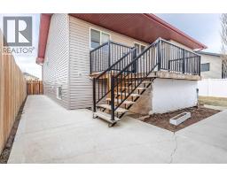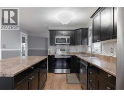 This house hosts. It welcomes you in, takes your coat, and gives you space to settle before anything else happens. The entry is bright and open, the kind that handles arrivals easily and keeps things moving without pressure. It seats people comfortably in the large, light-filled living room upstairs, letting conversations start and warm up naturally. No one is rushed. No one feels crowded. The house gives everyone room to arrive before it shifts the night forward. It keeps the kitchen involved at all times. Dark modern cabinetry sets the mood, with newer, well-chosen appliances ready for everyday use. The island fills on its own, drawing people in and holding them there. Bar stools are claimed quickly, and conversation builds. The dining space stays close so no one ever feels removed from what’s happening. It splits the evening when it needs to. A big rec room takes on game days, movie nights, and louder energy. Just off to the side, the bar-shaped bonus room lowers the lights and changes the tone. This is where voices drop, stories stretch, and time stops being tracked. The house runs both scenes at once and never loses control of the night. When people need a break, it gives them one. The bedrooms are calm and bright, offering a quiet place to retreat when the noise fades. It moves the gathering outside without fuss. The deck handles overflow. The concrete pad waits for future plans. Brand new vinyl fencing and underground sprinklers do their job quietly, the way a good host always does. Throughout it all, the house manages the energy. Grey and brown vinyl plank flooring, soft grey walls, and wainscoting details keep things grounded while laughter and noise come and go. When the night ends, it resets without complaint. In the end, everything about this house points to the same thing. It knows how to handle people, and it does it well. (id:64686)