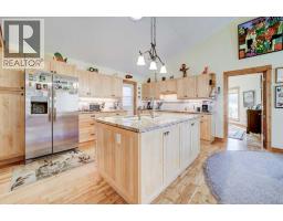 This Erickson-built home is nestled on a generous 6.11-acre lot within Villa Vega Acres. A beautiful home surrounded by mature trees, a stream and a small pond – what more could you ask for? Built in 2002, the home has been meticulously cared for, including new Hardie Board siding installed in 2025. The open floor plan on the main level creates a warm and inviting atmosphere with vaulted ceilings, beautiful wood beams, and a cozy wood-burning fireplace. Expansive windows lead to peaceful views in every direction, filling the space with natural light. The kitchen has granite countertops, a spacious island, and ample cupboard storage. There is direct access to the laundry room/mudroom with extra storage for small appliances and pantry items. Patio doors open onto a wrap-around deck, ideal for enjoying your quiet surroundings in the sunshine or shade. The primary suite is conveniently located on the main level and features both a walk-in closet and a luxurious five-piece ensuite. The ensuite includes a soaker tub with scenic views, providing a relaxing retreat. A beautiful library completes the main level, with bookshelves lining the walls, and large windows letting in abundant light. With plenty of room for comfortable furniture, the library may end up being your favourite room in the whole house. The walk-out lower level is designed for both family living and entertaining, complete with a pool table. There is one spacious bedroom with a four-piece ensuite, as well as two additional bedrooms. One of these bedrooms has access to a four-piece bathroom via a convenient Jack & Jill door. The thoughtful layout provides flexibility for families needing extra space or for hosting overnight guests. A triple-car attached and heated garage rounds out the house, and there is also a double detached garage with a carport on the side, offering additional covered parking or storage. For the gardening enthusiasts, there is a fenced garden area with established raspberries and strawbe rries for your enjoyment. Call your favourite REALTOR® to see this property - you will not be disappointed! (id:64686)
