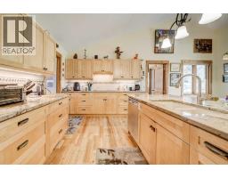 This Erickson-built home is nestled on a generous 6.11-acre lot within Villa Vega Acres. A beautiful home surrounded by mature trees, a stream and a small pond – what more could you ask for? Built in 2002, the home has been meticulously cared for, including new Hardie Board siding installed in 2025. The open floor plan on the main level creates a warm and inviting atmosphere with vaulted ceilings, beautiful wood beams, and a cozy wood-burning fireplace. Expansive windows lead to peaceful views in every direction, filling the space with natural light. The kitchen has granite countertops, a spacious island, and ample cupboard storage. There is direct access to the laundry room/mudroom with extra storage for small appliances and pantry items. Patio doors open onto a wrap-around deck, ideal for enjoying your quiet surroundings in the sunshine or shade. The primary suite is conveniently located on the main level and features both a walk-in closet and a luxurious five-piece ensuite. The ensuite includes a soaker tub with scenic views, providing a relaxing retreat. A beautiful library completes the main level, with bookshelves lining the walls, and large windows letting in abundant light. With plenty of room for comfortable furniture, the library may end up being your favourite room in the whole house. The walk-out lower level is designed for both family living and entertaining, complete with a pool table. There is one spacious bedroom with a four-piece ensuite, as well as two additional bedrooms. One of these bedrooms has access to a four-piece bathroom via a convenient Jack & Jill door. The thoughtful layout provides flexibility for families needing extra space or for hosting overnight guests. A triple-car attached and heated garage rounds out the house, and there is also a double detached garage with a carport on the side, offering additional covered parking or storage. For the gardening enthusiasts, there is a fenced garden area with established raspberries and strawbe rries for your enjoyment. Call your favourite REALTOR® to see this property - you will not be disappointed! (id:64686)