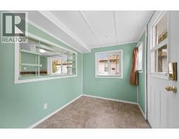 Looking for an affordable 2 bedroom home on its own lot so no pad fees, then look no further! This home is situated on a mature lot and features newer windows, shingles (2020), all new pex plumbing throughout, and newer back door. As you enter the home you will appreciate the large entrance with built in bench, shoe rack and closet. There is a large dining area with lots of natural light - a great place for family mealtimes. The kitchen features white cabinets, a central island, pantry and lots of counterspace. Relax in the spacious living with its lovely wood burning stove - snug and cozy on a cold winters day! There is a great den/office - this room does not have a heat source so is not included in the total square footage of the home. Bedroom # 1 has 2 large windows and is currently where the washer and dryer are hooked up. The primary bedroom has dual aspect windows, a ceiling fan, large closet and a door into the bathroom. The 4 piece bathroom features a large vanity. There is additional storage area too! The yard is fully fenced and features mature trees and shrubs and has 2 storage sheds. There is a gravel driveway to the front of the home so plenty of parking! View 3D /virtual tour/multimedia. (id:64686)