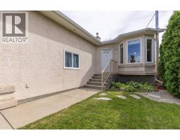 This beautifully maintained 4-bedroom, 3-bathroom bungalow with an attached double garage offers the perfect blend of space, comfort, and location — all within walking distance to parks, schools, restaurants, and shopping. Step inside to a bright, open-concept layout featuring the living room, dining area, and kitchen. The living room is warm and inviting, highlighted by a large bay window that fills the space with natural light. The dining area features soaring ceilings, creating an ideal setting for gatherings and entertaining. The kitchen is designed with functionality in mind, offering a central island with breakfast bar, ample cabinetry, a pantry, and newer appliances including a gas stove, range hood, and fridge — perfect for any home chef. Down the hall, the spacious primary bedroom includes a 3-piece ensuite and a large closet with built-in organizers. A second bedroom and a 4-piece bathroom complete the main floor. The fully finished basement provides even more living space, featuring a large family room with new professionally installed carpet, an insulated chimney ready for a fireplace setup, two additional bedrooms, a 3-piece bathroom, and a generous storage room. Enjoy the outdoors in the south-facing backyard, complete with a pergola-covered deck — perfect for relaxing or entertaining. The fully fenced yard also includes an existing gas line with a potential hookup for a BBQ or fire table, along with a 29' x 22' parking pad with gate and alley access, ideal for extra vehicles, an RV, or a trailer. A 30-amp plug adds even more convenience for trailer storage. Additional updates and features include new flooring throughout, frost-free exterior taps, regularly serviced furnace and AC, updated fixtures in the basement bathroom, and both gas and 220V power in the garage. If you're looking for an updated family home in a prime location, this one is a must-see. Contact your favourite REALTOR® to book your showing today. (id:64686)