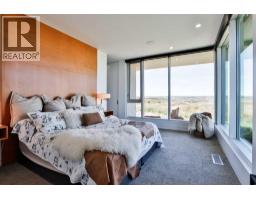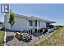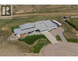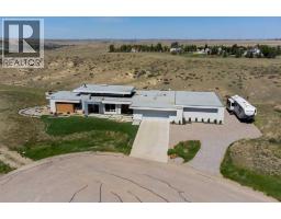 This property is as close to *Selling Sunset* as you'll find in Southern Alberta! This sprawling modern bungalow will capture your attention with the breathtaking view of the coulee in the distance. Stepping through the impressive wood pivot door, you know you're in for a treat. The main floor features 14-foot ceilings, complemented by floor-to-ceiling triple-pane commercial glass windows that will leave you speechless! The open-concept layout seamlessly combines the dining, living, and kitchen areas, with polished concrete floors being warmed by light wood cabinetry. The sleek white, quartz countertops, showcase your kitchen and island area, with windows that create a delightful connection between your indoor and outdoor spaces. The impressive appliance package, featuring a gas cooktop, a cabinet-paneled oversized fridge, a built-in microwave and oven, and a wine fridge. A coffee lover's dream, a built-in Miele espresso machine rivals even the best cafés. A cleverly hidden pantry door adds an extra touch of seamlessness! The living room is anchored by an oversized wood-burning fireplace, transom windows fill the space with natural light. There is an office with stylish floating shelves sits off of the Living room. The primary suite, features floor-to-ceiling windows that wrap the corner, providing spectacular morning & sunset views right from your bed. The walk-around closet is a shopper's dream, while the bright and airy ensuite features double vanities and a luxurious steam shower. Off the kitchen lies a spacious laundry/all-purpose room perfect for sewing or supervising homework while you prepare dinner. In the east wing, you’ll find three spare bedrooms. One has its own ensuite bathroom, while the other two share a Jack and Jill bathroom with a beautifully tiled shower, double vanities, and a skylight that invites natural light. Continuing down the hallway, another floor-to-ceiling glass panel reveals your very own gymnasium, measuring an impressive 32 x 40 fee t with 20-foot ceilings, complete with built-in basketball hoops, pickleball court & 3 wide closet for organizing all your sports gear. Floating wood stairs with striking black railings lead you to the basement living room, perfect for movie nights, and entertaining with your side bar. With large windows typical of a walkout basement, this space feels open and bright, completed by a half bath. Outside the gym exit, is a newly installed large sunken patio that blends with the home’s aesthetic. Complete with double gas fireplaces, a pergola, and oversized hot tub. The main patio off the kitchen features a covered deck, built-in speakers, a gas fire pit, and views that are unmatched in all of Southern Alberta. Equipped with cutting-edge technology, most lights, blinds, heating, cooling, and music can be controlled via a control panel or your phone—an upgrade valued at $100,000! The home also offers both forced air and indulgent in-floor heating. Call your REALTOR® for a private viewing today! (id:64686)
