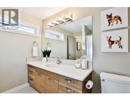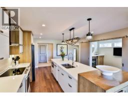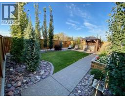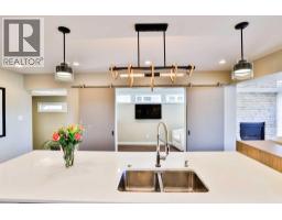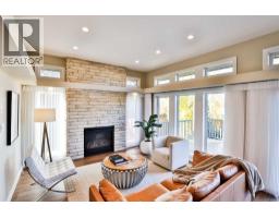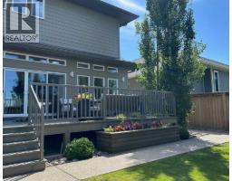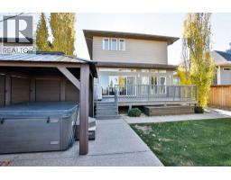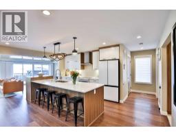This modern masterpiece embodies luxury without compromise. From the moment you arrive, it’s clear that no detail has been overlooked and no expense spared. Clean architectural lines, expansive windows, and seamless indoor-outdoor living set the tone for a home that’s equal parts style and substance.The exterior features durable Hardy board siding and a beautifully detailed vestibule entryway that welcomes you inside. Coffered ceilings, a step-up to stunning engineered hardwood floors, and a sleek white quartz kitchen with two-tone modern cabinetry make an immediate impression. Gold-accented Whirlpool appliances in ice white complement the cabinetry, while a built-in modern china cabinet with interior lighting anchors the island and provides stylish separation.Off the kitchen, double sliding doors open to a versatile flex space—perfect for a home office, lounge, or playroom—complete with built-in cabinetry and a temperature-controlled wine fridge. The rear entry showcases a custom coffee bar, built-in cabinetry, and roll-out pantry drawers, making for an ideal prep and storage area. A tucked-away powder room features stunning wallpaper for a touch of drama, and the unfinished basement offers room for additional bedrooms, a bathroom, and a large family space.The living room impresses with 10-foot ceilings, bulkhead detailing with striking window coverings ($15,000) and floor-to-ceiling limestone rockwork surrounding a gas fireplace. Oversized windows and patio doors bring the outdoors in, leading to a large rear deck with aluminum railing, natural gas hookup, and beautifully landscaped yard. Features include underground sprinklers, decorative curbing, exposed aggregate, and a eight-person hot tub beneath a charming pergola—your private backyard oasis.An extra-wide staircase with photo-sensor lighting leads to the upper level, where 10-foot ceilings in the bonus room and a skylight flood the space with natural light. Two spacious front bedrooms, a large main b ath, and second-floor laundry add everyday convenience. The primary suite is a true retreat, set apart by a custom glass-railed staircase and modern crown molding with pot-light detailing. A walk-in closet and two custom built-ins provide abundant storage. The spa-inspired ensuite features a double floating vanity, water closet, exquisite glass-tiled shower with dual heads, and heated floors for year-round comfort.Additional highlights include a dual-furnace system, gemstone exterior lighting (front and back), garburator, soft-close toilets, central vacuum, humidifier, and extensive lighting upgrades. The heated, oversized epoxy-floored garage offers ample storage and built-ins.Located in desirable Sixmile, this exceptional home offers easy access to Southside amenities and feels like a show home that’s just been built and READY FOR YOU TO MOVE INTO! (id:64686)