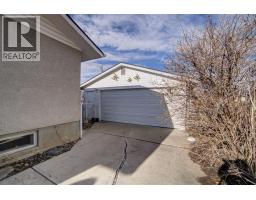 Welcome to your ideal bungalow, centrally located close to downtown, parks, walking paths, and schools. This well-maintained home features a spacious living room with large south-facing windows that flood the space with natural light. The cute and functional kitchen offers updated cabinetry, countertops, and backsplash, with a sink overlooking the backyard. A movable island and a window opening to the living room enhance the sense of space and flow. The separate dining room is highlighted by a large picture window, perfect for everyday meals or entertaining. Two bedrooms are located on the main floor, including a generously sized primary that easily accommodates a king-size bed. Both bedrooms feature full-height closets for excellent storage. A 3-piece main bathroom with a walk-in shower completes the main level. A rear entrance leads directly to your ground-level patio and fully fenced backyard. Downstairs, the basement offers a nostalgic feel with a family room, games room complete with a wet bar, an additional bedroom (see remarks), and a 2-piece bathroom with a shower conveniently located nearby. The property also features back alley access, a large side driveway, and a detached heated garage—ideal for parking, storage, or a workshop. Many perennials throughout the yard as well as raspberry bushes and a raised garden bed. Immediate possession is available, making this a fantastic opportunity to move right in. (id:64686)