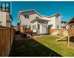This stunning 2-storey former showhome is packed with upgrades and style! Featuring 5 bedrooms, an open-concept main floor with tons of natural light, sleek black chrome appliances, and a striking feature fireplace. Upstairs, skylights brighten the bonus room and the spacious primary suite offers a dream ensuite. Enjoy vaulted ceilings, A/C, blinds, a finished deck, underground sprinklers, full landscaping, and a solar system from Energy Smart! Move-in ready and beautifully designed! (id:64686)