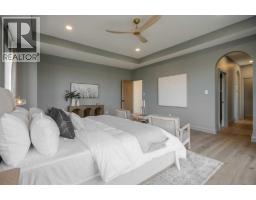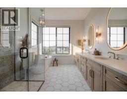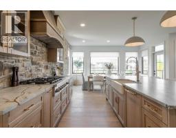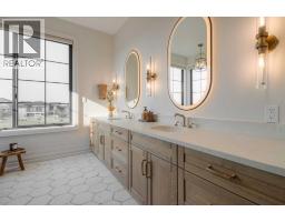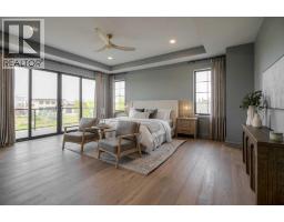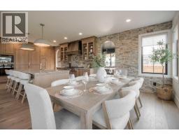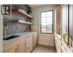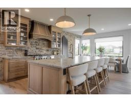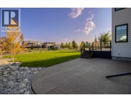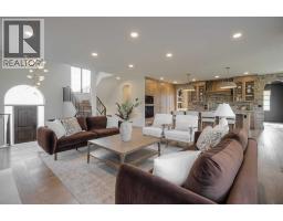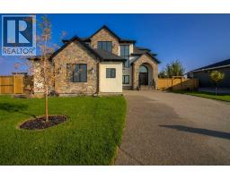 Welcome to the Meadow by Stranville Living Master Builder, located in the premier estate living community of Prairie Arbour Estates. This elegant two storey home boasts 4,417 square feet of developed area spread over three spacious levels in one of most thoughtful layouts you're likely to see. Where do we start? The French country exterior combines natural tones in acrylic stucco, fiber cement siding, and stone work with bold roof lines and dark contrasting windows. Large panes of high efficient glass envelope the home providing significant volumes of natural light and tranquil views of the huge yard and of Prairie Arbour's pond and walking paths. Fresh landscaping throughout the 1/3rd acre lot includes several trees, irrigated sod, exposed aggregate sidewalks, and a playful stone pathway to the park; all surrounded by a brand new privacy fence with two gates. Heading inside the home, the front entry foyer towers up 16' where a dramatic chandelier sets the tone for what lies ahead. Up a few stairs into the family room, you immediately get a feel for the expansive main floor with clear views to the kitchen, dining room, and out to the back yard and the 576 square foot composite deck. The kitchen is bathed in white oak cabinetry with gold accents, and includes a premium appliance package by Fisher & Paykel, consisting of a paneled double fridge-freezer combo, gas cooktop with flat top, and wall mounted microwave and oven. More storage and counter space can be found adjacent the kitchen in the butler's pantry, which is finished in the same beautiful Davinci Leathered Quartzite as the kitchen. The large dining area easily seats 8-10 guests and is surrounded by glass and Hunter Douglas window coverings when privacy is on the menu. An executive style corner office that completes the main floor is drenched in dark tones and is accented by built-in shelving and even more windows. The second floor is the heartbeat of this terrific family home. The massive primar y suite has an amazing private balcony overlooking the backyard and park, perfect for early mornings or late nights. Warm your feet on the heated floors of the primary ensuite bathroom, which is fitted with a lengthy double sink vanity with illuminated mirrors, a large custom tiled shower, and a sultry soaker tub. Two more large auxiliary bedrooms and a corner media room maximize the use of space on the second level. This caliber of home requires full development and Stranville Living really wanted to show what could be done with the 1,358 square feet available in the basement. Tune your game and tee up on a premium golf simulator located beside a large family room, full 4-piece bathroom, another auxiliary bedroom, and a wet bar. I could list all of the upgrades in this home, but I'd rather you see it than read it. To fully appreciate what this home offers, you need to spend some time in it. There's nothing like NEW! (id:64686)